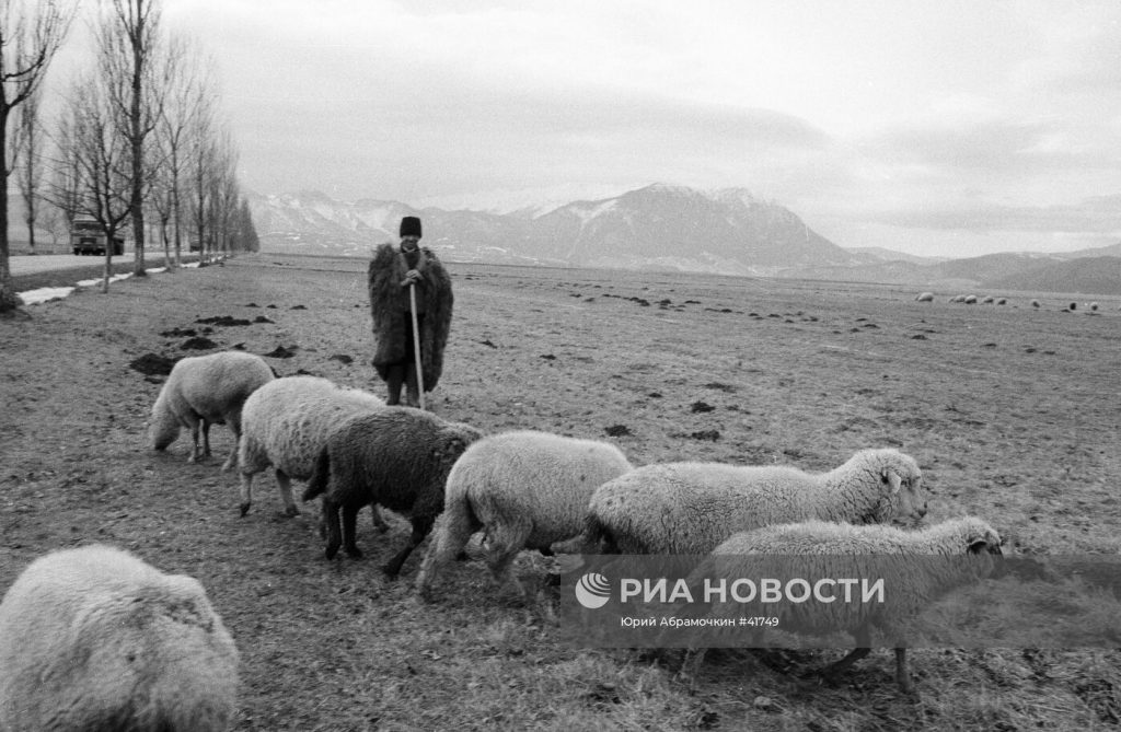 41749 01.10.1982 Румынский пастух с отарой овец.